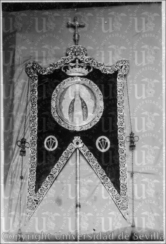 Estandarte mariano de la hermandad de la Soledad.CRONOLOGÍA: LOCALIZACIÓN: Santa María de la Mota. Marchena (Sevilla)NÚMERO REGISTRO: 001532TIPO DE IMAGEN: FORMATO: SOPORTE: GelatinobromuroFOTÓGRAFO: José María González-Nandín y PaúlFECHA: ESTADO DE CONSERVACIÓN: |
